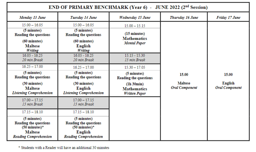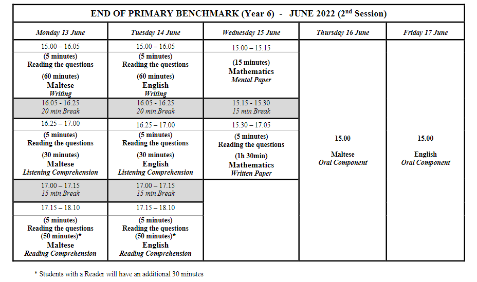 End of Primary – Benchmark